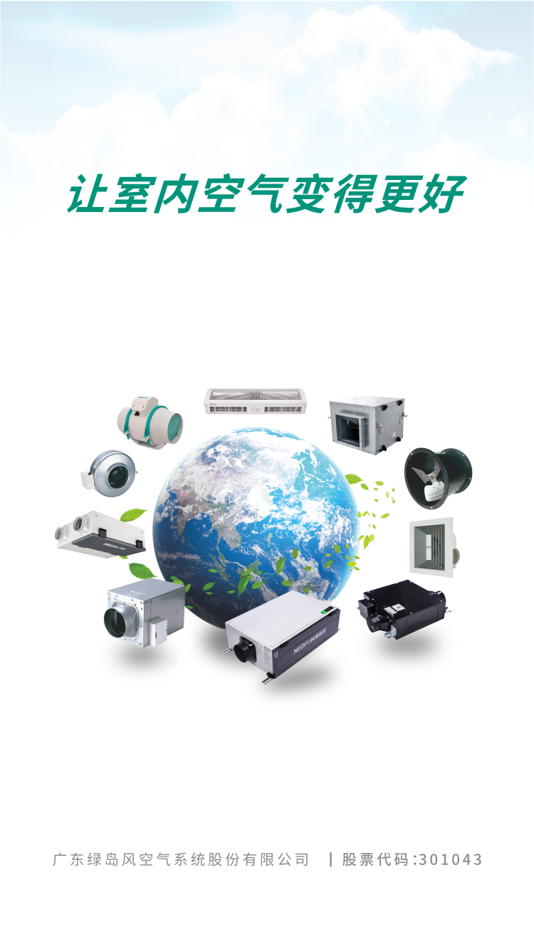 绿岛风长期从事室内通风系统产品的设计研发、生产及销售,致力于改善室内空气质量、提高建筑节能水平。